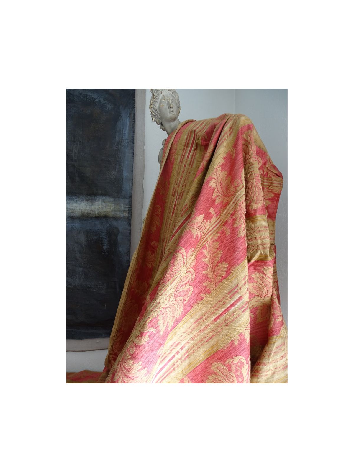 Magnifique paire de tentures réalisées en lin et soie , vous allez adorer cette couleur rose poudré , l'alternance de rayures et le délicat dégradé de beige.