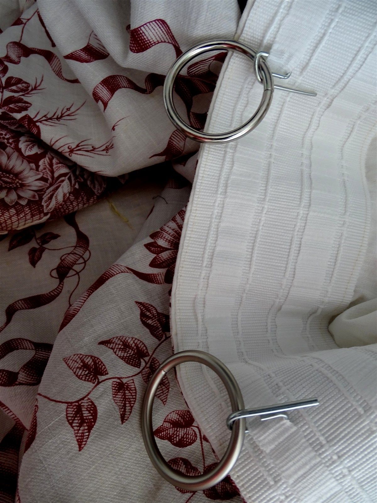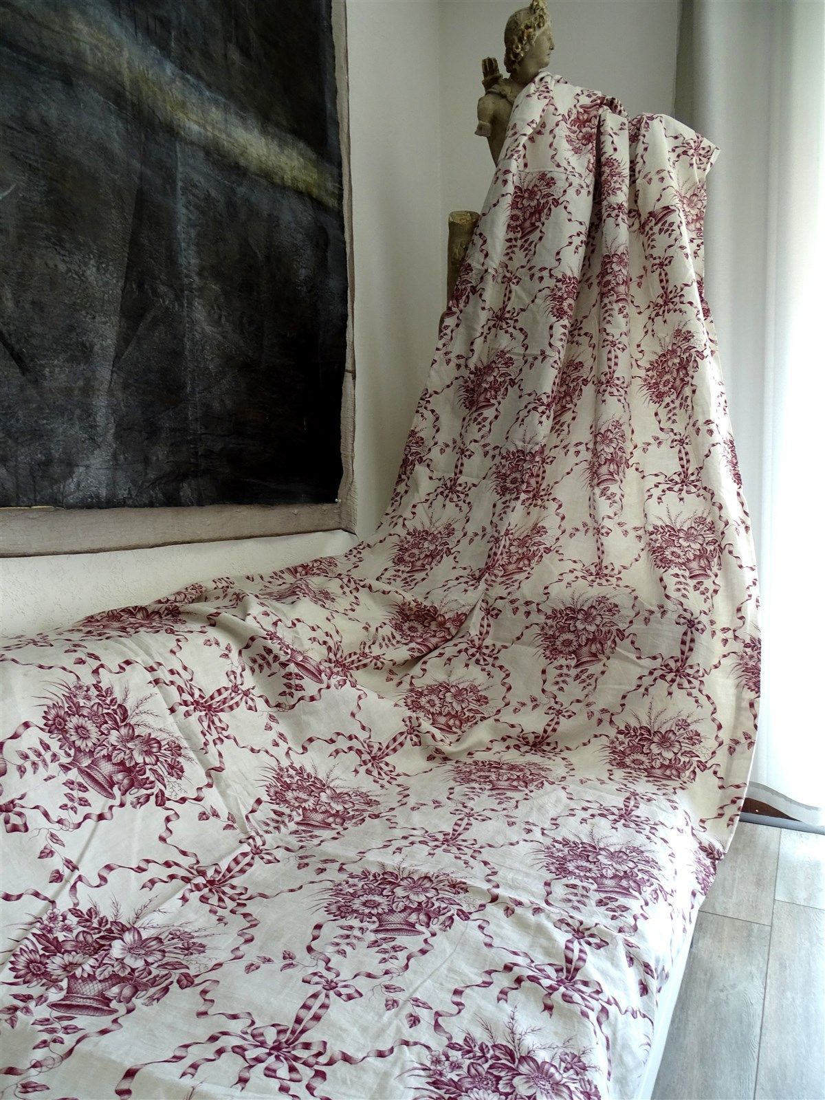 Délicate décoration pour un intérieur raffiné. Etoffe en trés bon état, doublés récemment de toile blanche, pour les protéger du soleil et un système d'accrochage est en place ainsi que des anneaux.