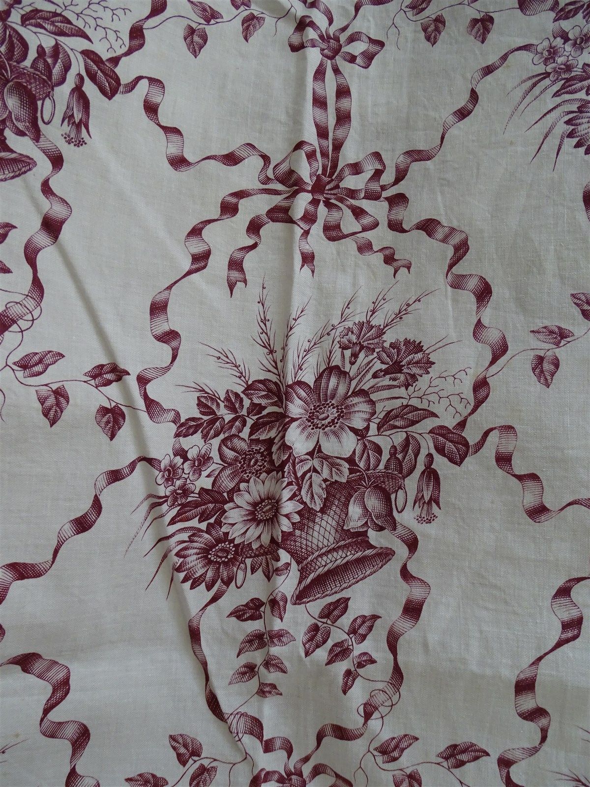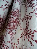 Magnifique toile blanche au délicat décor Louis XVI, rubans et paniers fleuris .