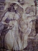 Belle toile de Nantes époque XVIIIème. La jeune fille et le jeune homme à la lyre.
