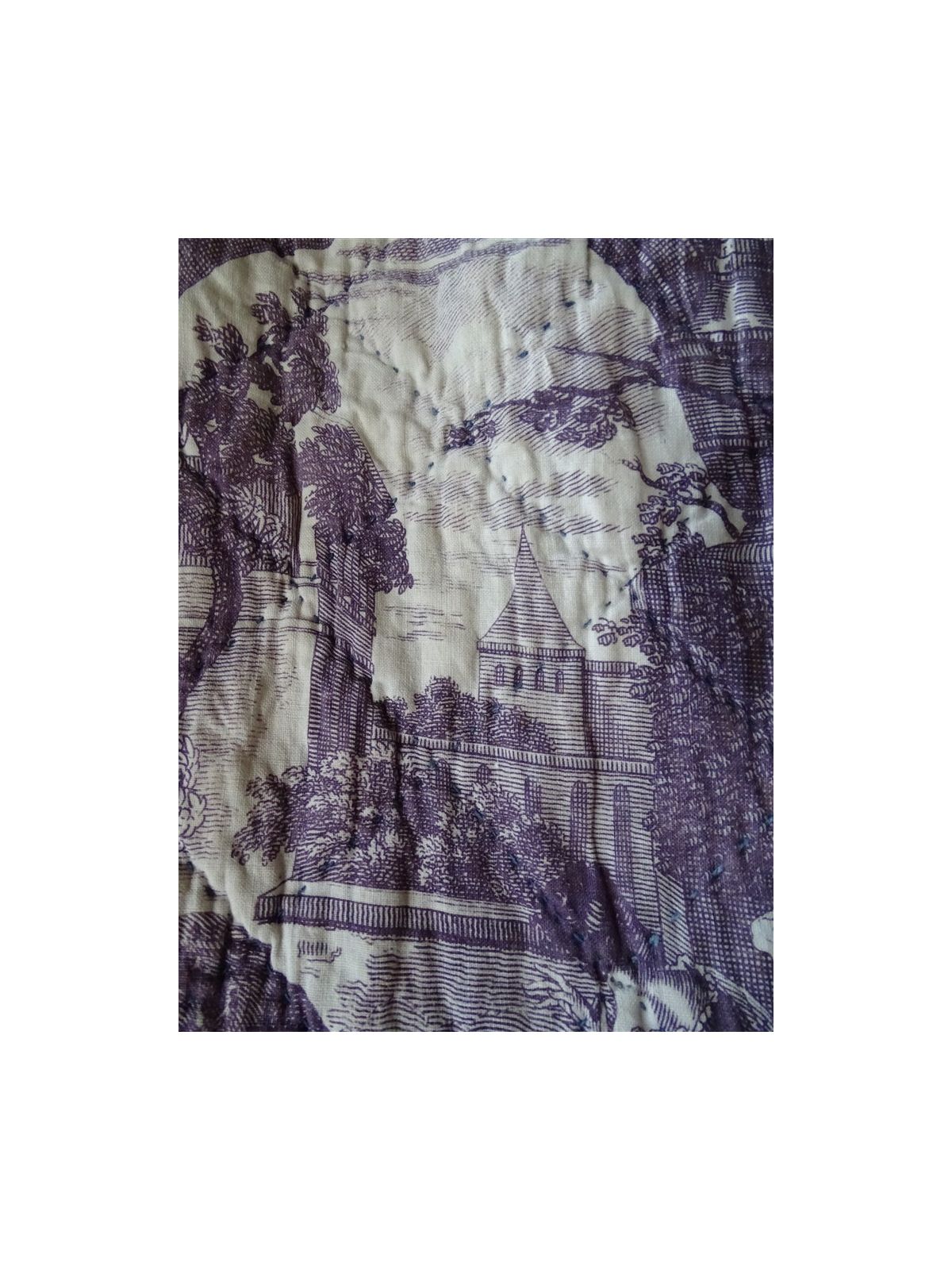Cette élégante toile est légèrement quiltée et doublée d'une fine toile de lin. Une couture au centre du panneau, dans la hauteur.