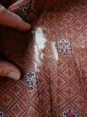 L'intérieur est en toile de coton, je note quelques traces d'usure du temps à deux endroits.