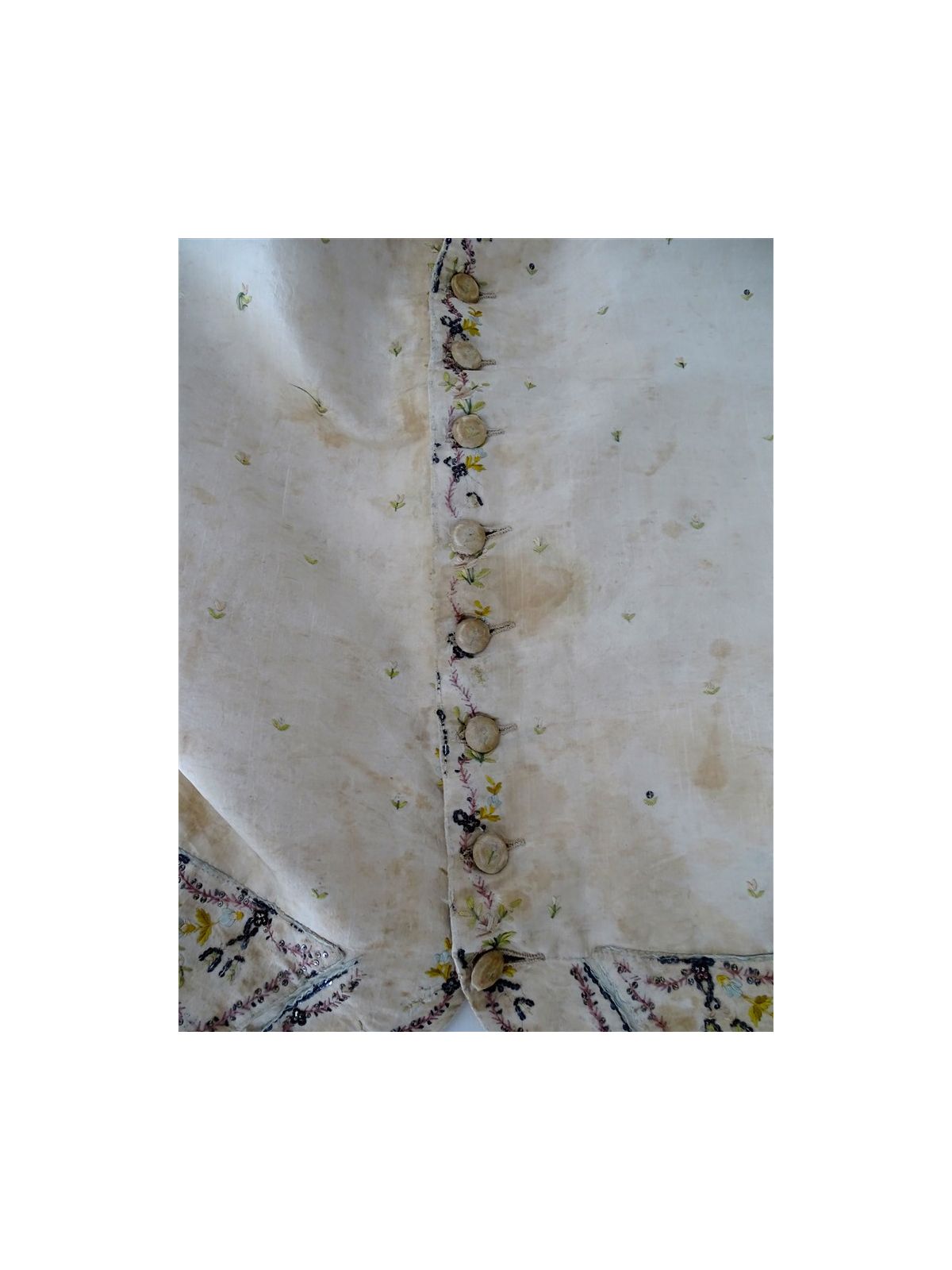 "Gilet En Soie Brodée époque XVIIIème Semis De Fleurs Et Boutons Recouverts"