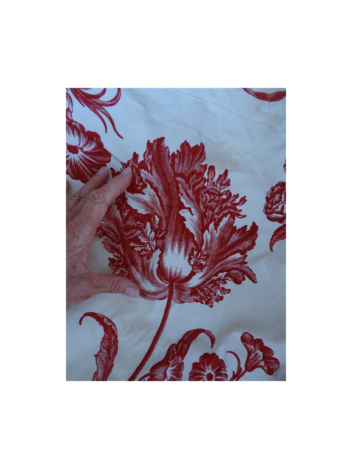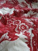 Magnifique paire de tentures en toile claire au somptueux décor de larges fleurs trés stylisées de couleur rouge.