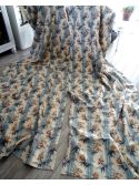 Très beau décor floral aux teintes bleues légèrement grisées , quelques touches de couleur saumon,