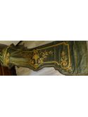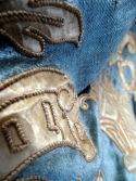Magnifique cantonnière en velours de soie de couleur vert eau , trés belle qualité et soie dorée pour les nombreux décors .