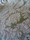 Trés belle soie vert clairdécorée de palmettes stylisées en lin couleur ficelle.